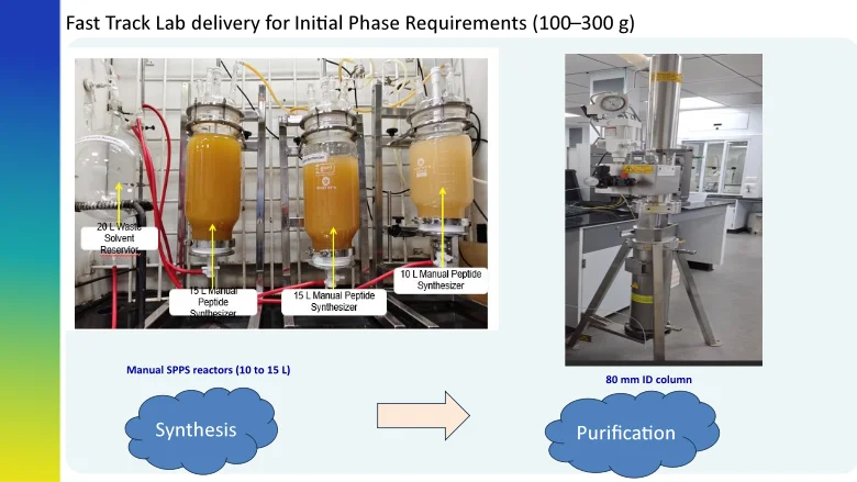 Aurigene offers advanced solid-phase (SPPS) and liquid-phase synthesis platforms, enabling production from small clinical batches to large-scale commercial supply.